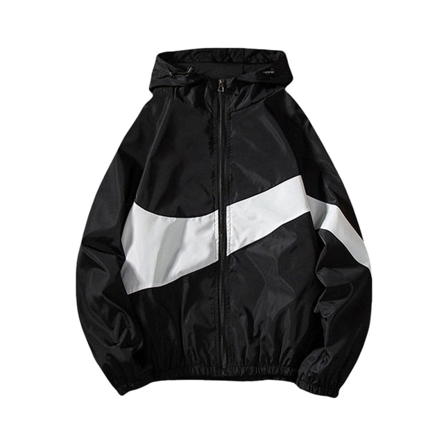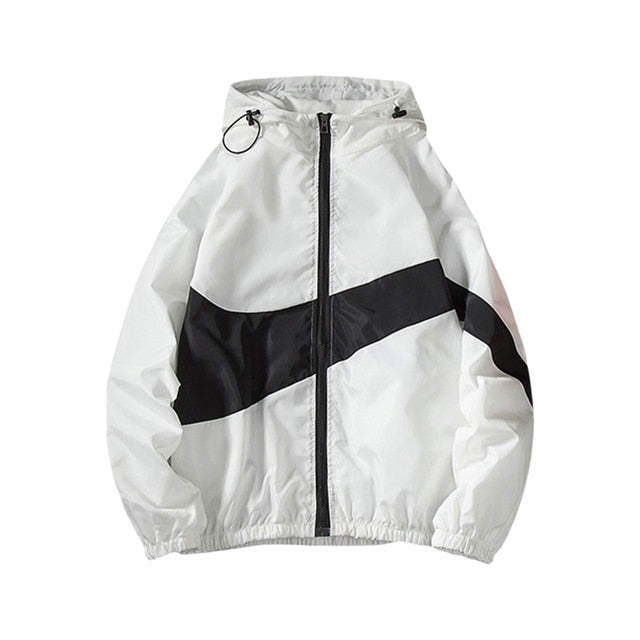 Men Spring Fall Thin Hoodies Coats Long Sleeves Color Block Zipper Hooded Sweatshirts Jacket Male Black /White/ Gray Outwear